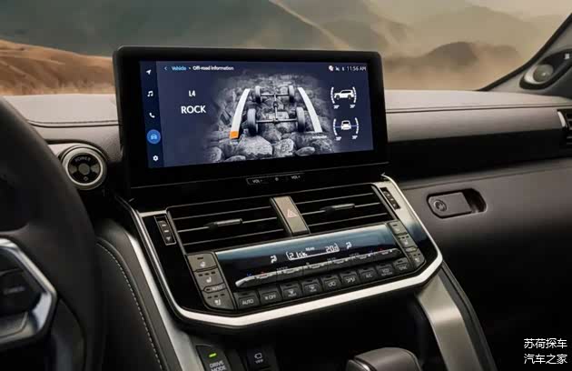 内饰部分,陆地巡洋舰300混动版车内配备了12.3英寸仪表+12.3英寸悬浮式中控屏,车机支持苹果CarPlay和安卓Auto。科技感还是有一点的。但整体依旧是较为硬朗的感觉。车内保留了大量的物理按键,且按键的尺寸都不小,适合驾驶员盲操。内饰的用料进行了提升,现在看起来还有一定的豪华感。采用真皮的座椅,支持座椅通风和加热。
