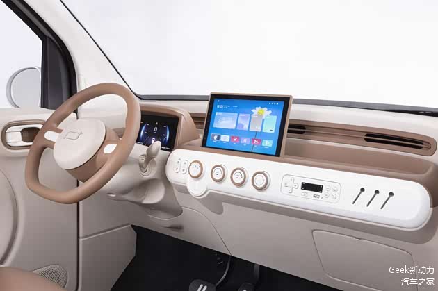 “摩登马”的设计堪称视觉焦点,将经典复古元素与现代精致美学完美融合,成为行走的时尚符号。奶咖双拼色灵感源自西西里传统建筑,奶油白似阳光照耀的石灰岩墙壁,温暖纯净;咖啡棕如古老门窗的木纹,沉稳有韵,搭配象征地中海璀璨阳光的镀铬装饰,让车身无论静止或移动都流光溢彩。细节处更见巧思:镀铬前后杠致敬“镀铬时代” 的豪华设计,镀铬门裙边与双腰线勾勒出修长优雅的车身轮廓,复古探照灯复刻上世纪赛车的野性优雅,木质行李架则自带悠闲自由的旅行氛围。不同于常见的方盒子造型,其流动曲面设计圆润饱满,曲线流畅萌动,从出行工具秒变复古时尚单品。车内提供多种配色内饰,环保材质广泛应用,搭配甜品造型的换挡旋钮与游戏手柄式功能按键,既增添了操作趣味,又让精致感渗透到每一处细节,彻底打破传统出行工具的刻板印象。