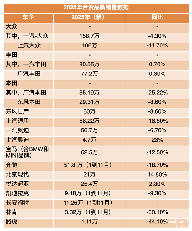 2025年合资品牌销量成绩复盘:中国车市不需要那么多合资品牌