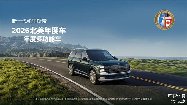 现代汽车旗下进口混动大六/七座旗舰SUV新一代帕里斯帝荣获“2026年北美年度多功能车”大奖