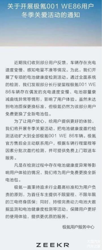 “以前半小时能充到80%电,现在得花俩小时;到了冬天,续航直接砍半,官方说电池有86度电,实际能用的就76度。”极氪001车主在社交平台吐槽,说出了上千位车主的烦心事。2024年底,极氪没办法,搞了个“冬季关爱活动”,给有问题的车主免费换电池包,这也是吉利要23亿赔偿的主要原因。