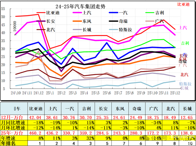 更值得关注的是,2025年1-12月累计销量虽达到3440万辆,同比增长9%,但这一增长主要依赖前三季度的强劲表现,第四季度增速的明显放缓暴露出市场动能的阶段性衰减。
