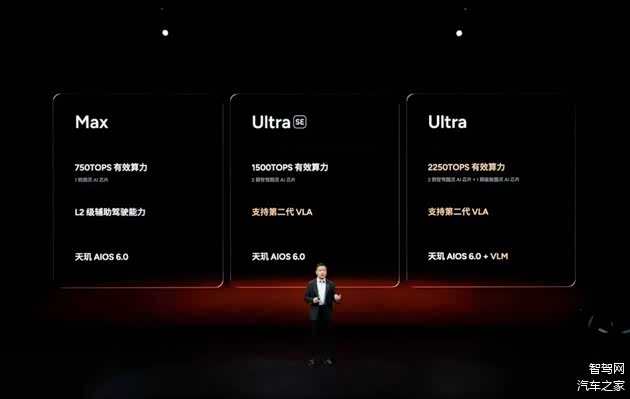 所有车型加价1.2万元可以升级为Ultra SE版本,该版本搭载2颗图灵AI芯片,支持第二代VLA+天玑AIOS 6.0。