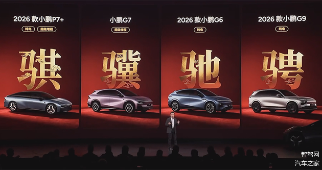 在当天的发布会现场,小鹏汽车一口气上了四款新车:2026款小鹏P7+、 小鹏G7超级增程、2026款小鹏G6、2026款小鹏G9。