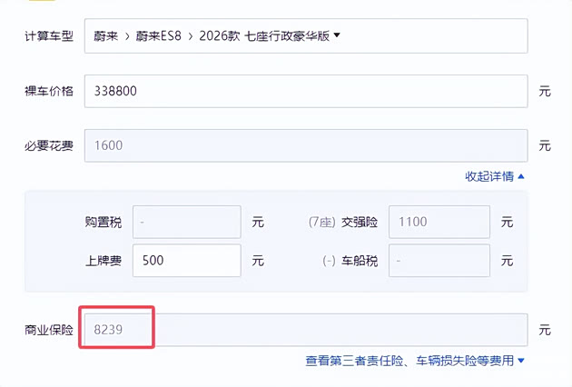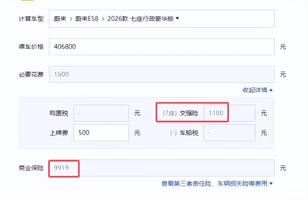 其次,就是保险费的降低了,因为保险费是按照你的车价来计算的,我们对比一下就能看出来的,按照40.68万的车价来,交强险1100元,但你的商业险要9919元,而选择租电版本时,车价降低33.88万,而交强险不变的情况下,商业险却只需要8239元,也就是说,你的保险费足足省下了1000多块钱,这些成本都是能看到的。