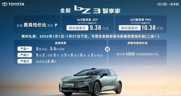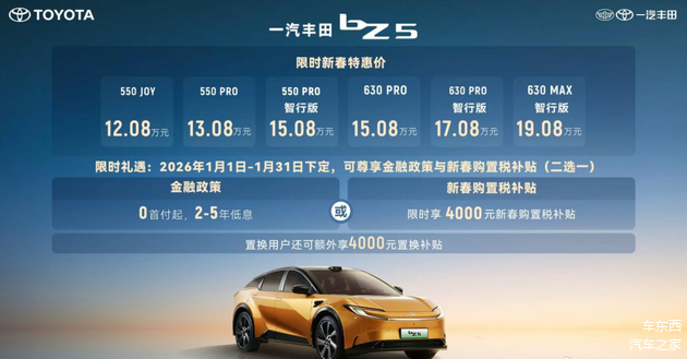 此外,另一款车型bZ5也给出了4000元的购置税补贴,显示出丰田在纯电赛道上“清仓式”反击的决心。