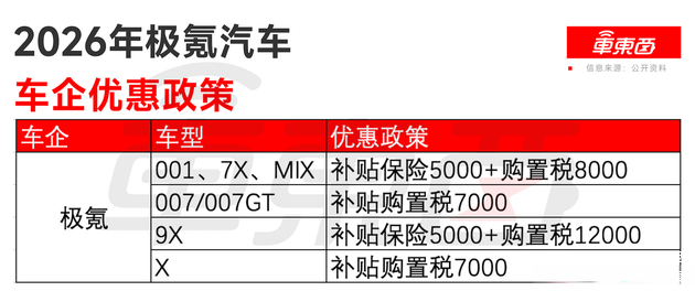 极氪001、7X、MIX等核心车型提供“5000元保险补贴+8000元购置税补贴”。顶级车型极氪9X的补贴总额更是高达1.7万元。