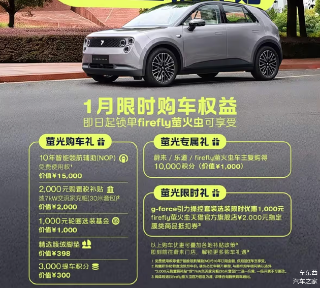 这些举措旨在通过软性服务的增值和针对性的成本分摊,避开合资品牌的价格肉搏区。在新势力方面,蔚来旗下的萤火虫品牌在1月权益中,不仅提供现金补贴,更重点赠送了10年NOA端到端辅助驾驶免费使用权。
