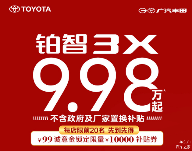广汽本田与广汽丰田也紧随其后。广汽丰田旗下的铂智3X宣布直降1万元并辅以购置税补贴。