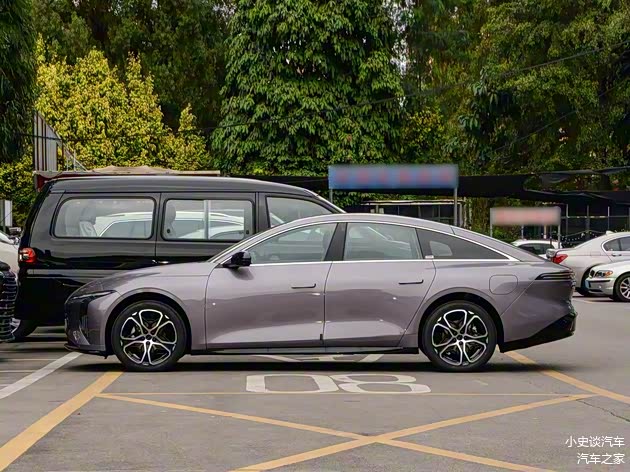 再来看车身侧面部分,4935mm的车长与2915mm轴距构成黄金比例,侧面采用双腰线设计:上腰线从车头贯穿至尾灯,下腰线在门板处形成光影折痕,搭配18英寸低风阻轮毂,营造出蓄势待发的动感。隐藏式门把手与无框车门的设计,不仅降低风阻,更赋予车辆豪华轿跑的气质。车顶采用3.65米全景玻璃穹顶,兼顾采光与头部空间,后排乘客可享受通透视野。