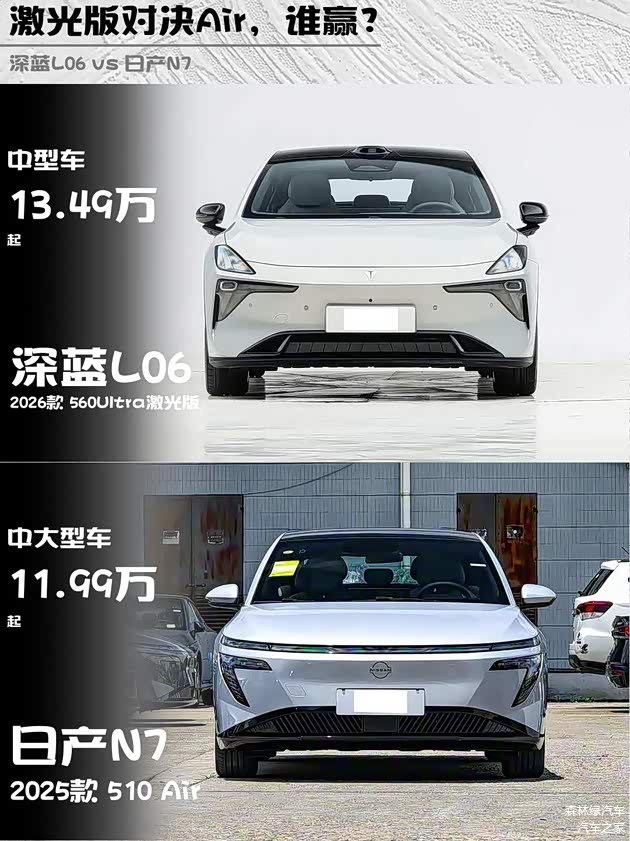最近在15万级纯电轿车市场纠结到不行😵💫 最终锁定 深蓝L06 2026款 560Ultra激光版和日产N7 2025款 510 Air这两款神仙打架的车型!作为深度试驾过两台车的准车主,必须来波硬核对比💥