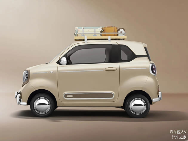 侧面同样是复古味十足,贯穿车身的镀铬腰线与门裙边,如笔挺西装的精致镶边,勾勒出优雅侧影,车顶行李架以及亮面封闭式轮圈罩的加入,更强化这种独属于上世纪五十年代的味道。尺寸方面,新车长宽高分别为3000/1510/1630mm,轴距1953mm。