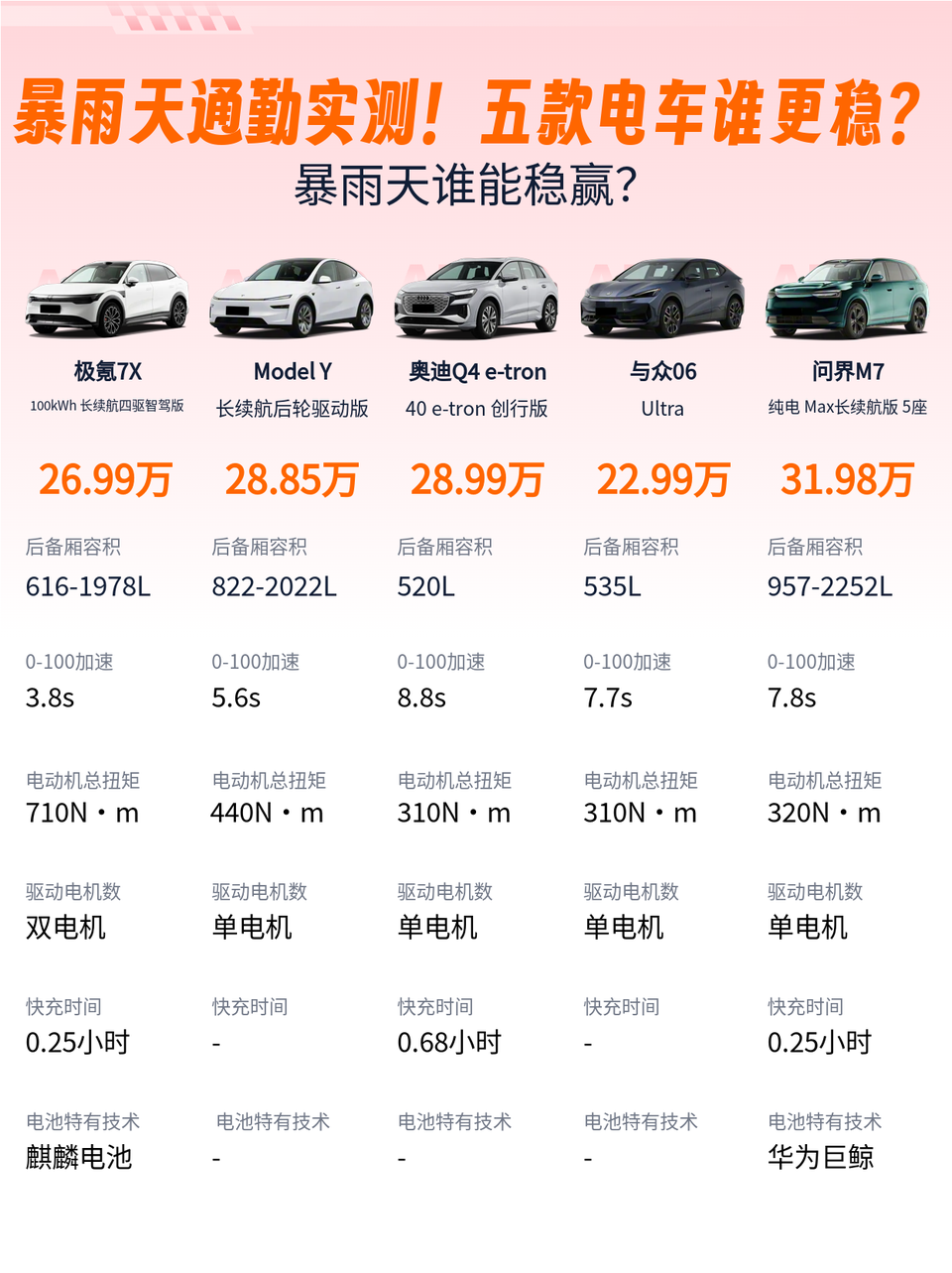 一句话总结:要性能选极氪7X,要品牌选Model Y,要性价比?你家更看重加速猛还是空间大?25万和30万你会怎么选?