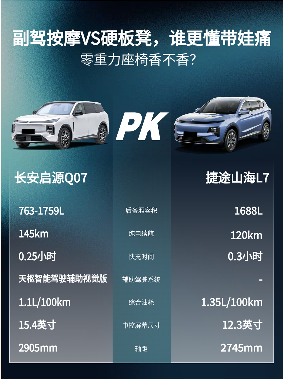“老公非要买7座SUV,说二胎家庭刚需?结果提车第一天就翻车了😅” 捷途山海L7的第三排,1米7的兄弟坐进去膝盖顶前座,头顶蹭车顶…这哪是七座?分明是“童年阴影专座”啊! 反转来了✨试了闺蜜的长安启源Q07 145尊耀型——大五座后排能半躺!副驾零重力座椅带8点按摩,老公抢着坐:“比家里按摩椅还爽🚗💆♂️” 二次暴击⚡️周末露营,山海L7第三排堆满行李,Q07直接1759L后备箱塞进烧烤架+帐篷!外放电煮咖啡时,隔壁车主都来蹭电😂 现在老公天天念叨:“七座不如大五座香!” 所以…你家选车是面子工程还是真实用?来评论区Battle!