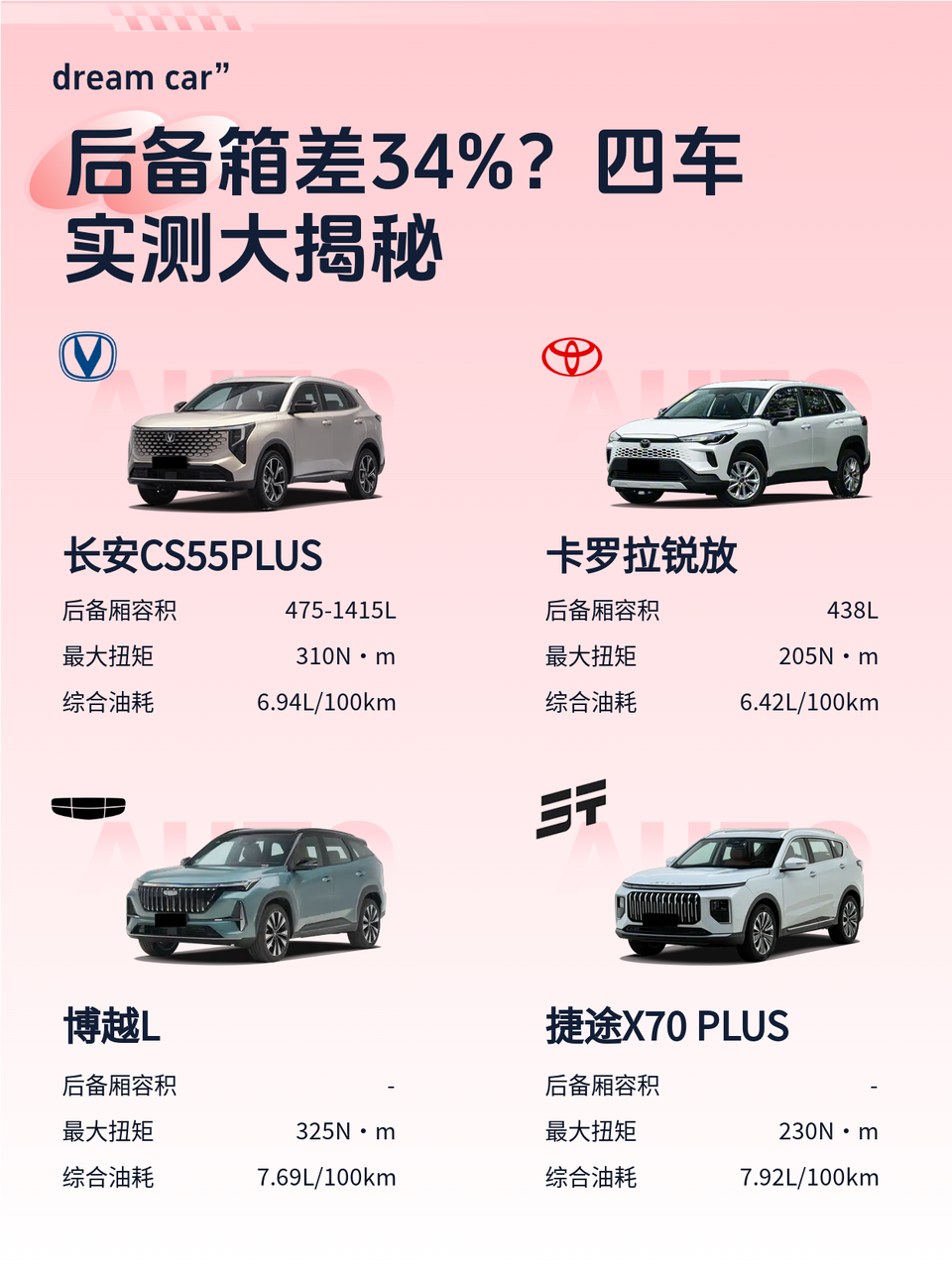 后排坐满人腿都伸不开?后备箱塞个婴儿车就关不上门?今天实测长安CS55PLUS、卡罗拉锐放、博越L、捷途X70 PLUS,结果惊呆!