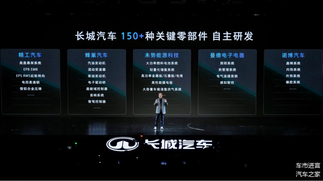 当然,归元平台的实现,离不开长城汽车强大的研发体系与垂直整合能力。其拥有从试验室(如安全试验室、气动-声学风洞)、综合试验场到全球场景验证的完整基础设施。通过“国内基础开发+海外本地化验证”的模式,在产品端实现全球化深度适配。在自研能力上,长城在超过150个关键领域实现自制,覆盖从动力总成、三电系统、氢燃料到核心零部件、域控制器乃至传感器。