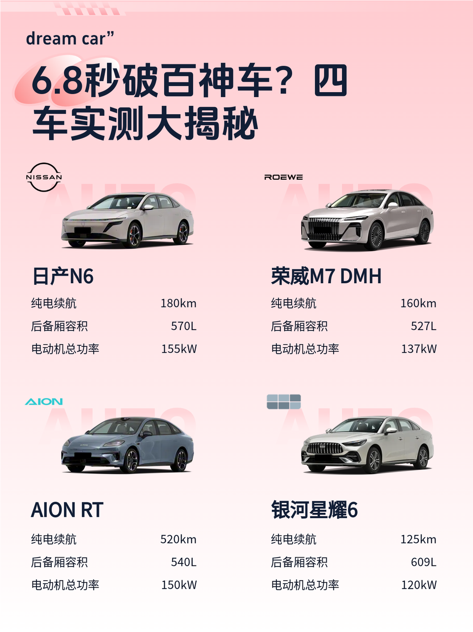 N6后备箱570L装婴儿车+露营装备无压力;荣威M7后排能跷二郎腿;AION RT溜背造型压头部空间;银河星耀6地台纯平但门板储物槽窄。宝妈奶爸直接抄N6作业!