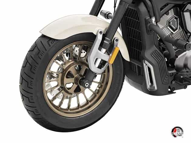 CU625的形态是对经典美式巡航的现代演绎。整体轮廓饱满而克制,没有过度夸张的镀铬,取而代之的是金属质感漆面与精良的铸铝件。视觉重心自然是那台裸露的V型双缸发动机,水滴形油箱线条圆润,赋予它扎实的体态。侧面的散热气帘不仅功能性十足,其精密结构也成为了装饰的一部分。新增的擎天灰配色,漆水做工进一步提升整车质感。