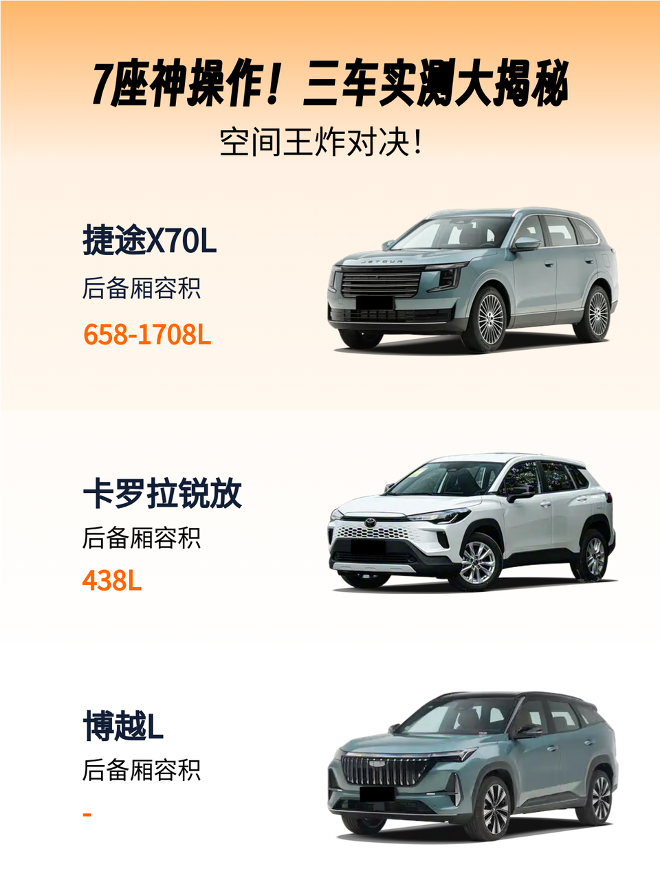 15万预算买SUV,7座和5座差距能有多大?实测捷途X70L、卡罗拉锐放、博越L三款热门车,结果太真实了!🔥