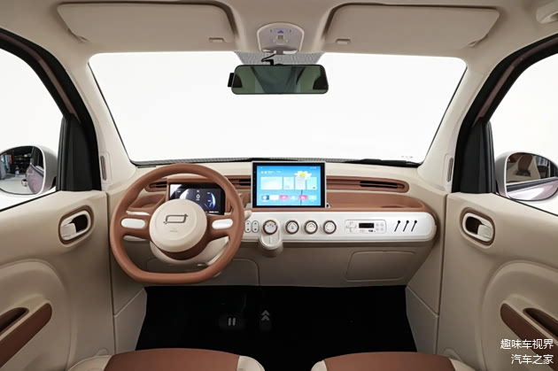 内饰延续简洁实用基调,细节处融入复古与趣味元素。中控台以平直线条为主,配备7英寸全液晶仪表,10.1英寸AI智慧大屏可选装,接入DeepSeek模型支持AI语音助手与导航投屏。换挡旋钮采用甜品造型,功能按键设计成游戏手柄样式,踏板印有音乐与游戏符号,副驾前方配备三个灵活挂钩,兼顾美观与实用性。安全配置上,标配高强度笼式车身、主驾安全气囊,电池系统达IP68防水防尘等级,历经百项严苛测试。