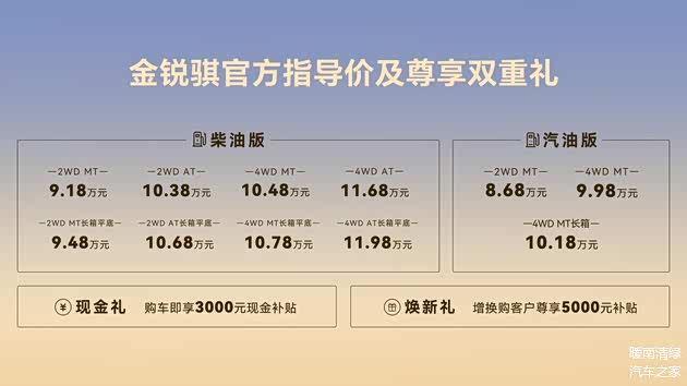 主题下,正式推出全新力作——金锐骐,新车售价8.68万元起。