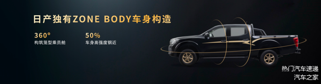 在车身结构上,金锐骐搭载日产专利ZONE BODY区域车身,高强度钢应用比例近50%,关键碰撞区配备1300MPa热成型防撞梁,配合封闭式“O”型车架及笼式座舱,构建全方位安全守护。渐变式钢板弹簧后悬架支持2吨载重能力,令车辆在满载情况下依然保持稳定行驶。