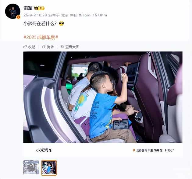 更有趣的是,小米汽车意外成了“小孩哥”的心头好。去年成都车展,一群小学生围着SU7摸轮毂、按屏幕,雷军在现场看得直笑。