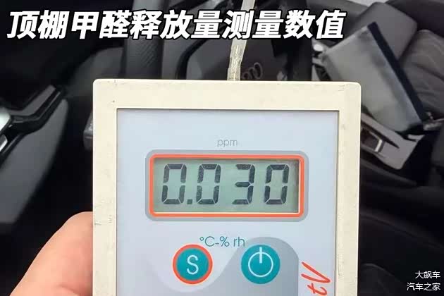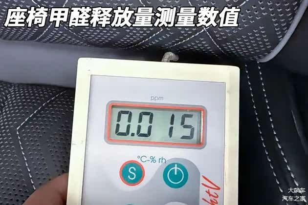 座椅的甲醛释放量测量数值为0.015毫克每立方米,顶棚中的甲醛释放量测量数值为0.030毫克每立方米。