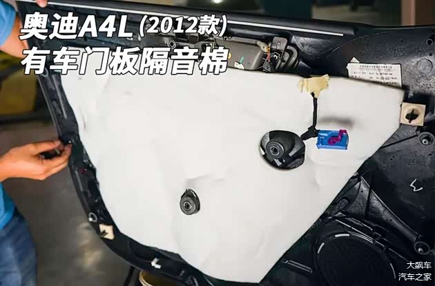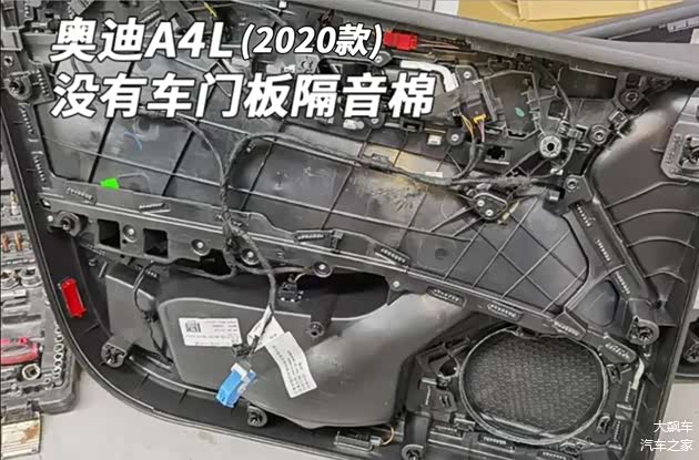 前后车门内饰板都没有吸音棉,和老款的奥迪A4L一样,不过更老款的A4L可是有大面积的白色原生吸音棉!