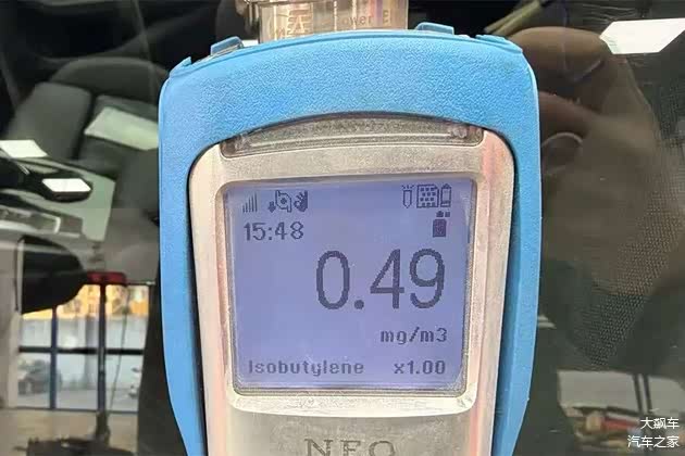 经过在23±1℃恒温环境中16小时的封闭,这辆车的车内空气TVOC释放量测量数值为0.49毫克每立方米。