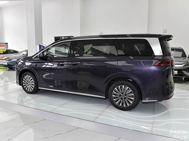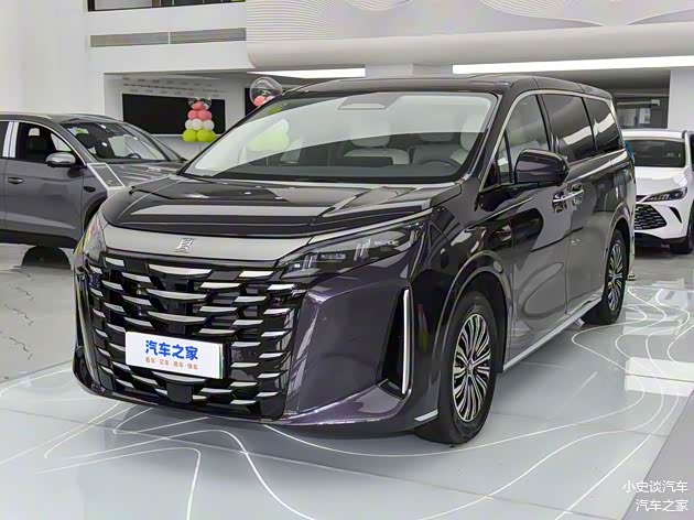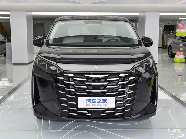 进入车内,内饰采用环抱式座舱设计,大面积软皮包裹中控台,搭配木纹饰板与银色金属饰条,质感媲美30万级豪华MPV。12.3英寸全液晶仪表+15.6英寸悬浮式中控屏组成智能双联屏,搭载DiLink 5.0智能网联系统,操作流畅无卡顿,支持语音控制,空间表现是核心优势,2+2+3七座布局兼顾舒适性与灵活性。第二排独立航空座椅支持多向调节,腿部空间充裕,搭配可调节扶手与杯架,中间过道宽度足以容纳成年人通行。第三排空间惊喜十足,身高175cm的乘客乘坐时腿部仍有一拳余量,头部空间不压抑,满足全家出行需求。
