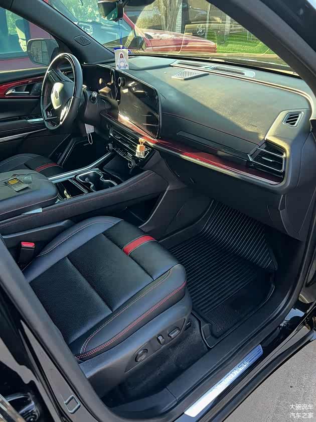 车内采用了新的设计,空间上比较宽敞,提供三排座椅的造型,采用了11英寸的全液晶仪表,还搭载了17.7英寸的悬浮式中控屏幕,采用了怀挡的设计,车内采用了全黑色的氛围,有着运动的设计,配置有HUD抬头显示。