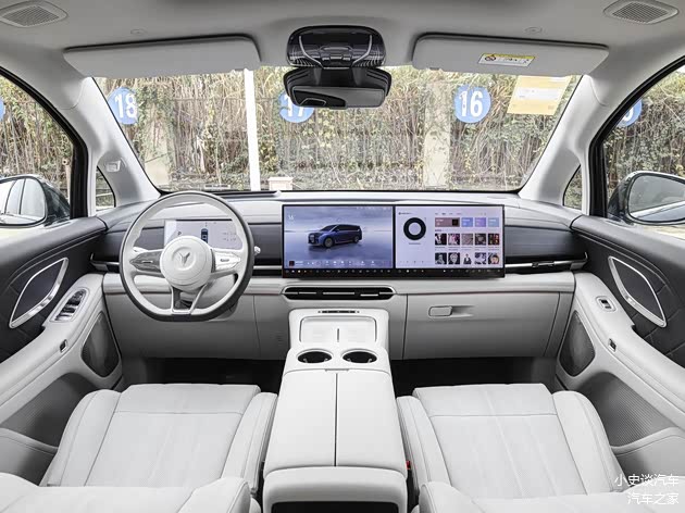 进入车内,内饰以豪华舒适为核心,大面积软包材质搭配细腻木质饰板,15.6英寸悬浮式中控屏显示清晰、操作流畅,白天阳光直射下仍能正常视物,搭配副仪表台下方无线充电板,日常使用便捷度拉满。车内配备64色氛围灯,可随音乐节奏变换,夜间行车氛围感十足,细节处的绗缝工艺进一步提升内饰精致感。空间表现方面,三排座椅均能提供充裕乘坐空间。身高180cm的乘客坐前排头部有一拳两指余量,第二排双零重力航空座椅为核心亮点,支持电动调节、加热、通风及3种模式按摩,零重力模式可让身体均匀受力,扶手处6英寸触控屏可操控座椅、空调及13L冷暖冰箱,兼顾舒适与实用。