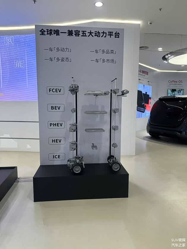 归元平台原生兼容五大动力形态——燃油(ICE)、混动(HEV)、插混(PHEV)、纯电(BEV)以及氢燃料电池(FCEV),并预留柴油混动扩展能力,实现真正意义上的“一套架构,全域兼容”。