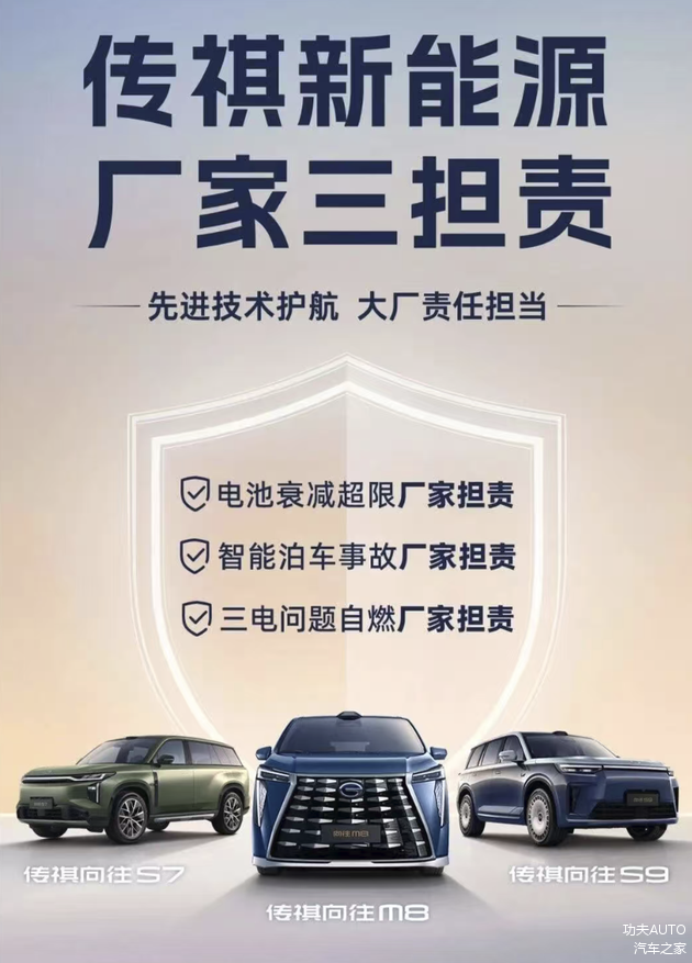 近段时间以来,传祺不断深耕用户核心诉求,聚焦家庭出行无里程焦虑痛点,升级打造“向往2.0体系”。其中,传祺坚定践行“厂家三担责”官方承诺,直击用户三大核心焦虑:一担电池衰减之责,让用户用得安心;二担智能泊车之责,让用户放心享受智能便利;三担三电安全之责,彻底打消用户对产品自燃的忧虑。这份实打实的承诺,构建全周期安心保障,传递品牌温度,实现品牌与用户同频共生,取得不俗的口碑。