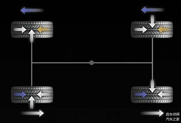 当前轮一侧被制动锁定,另一侧前后轮同时输出驱动力时,整辆车就会围绕被刹车的一侧低速旋转,转向半径被压缩。视觉上,车辆呈现出类似原地掉头的效果,但整个过程不依赖车轮反向旋转。