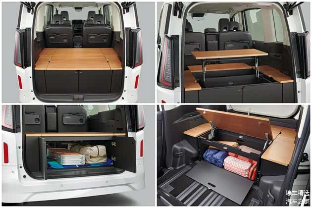 至于新增的 Serena Multi Box 则是改采双排五人座配置,在原本的第三排空间设置有一个顶部及侧面皆可独立开启的大容积置物箱,能作为桌面或长椅使用,其内部也设有隔板设计,方便分类及固定置放物品。除此之外,还可搭配以防水材质制成的床垫使用,化身成简易露营车,展现多功能用途。