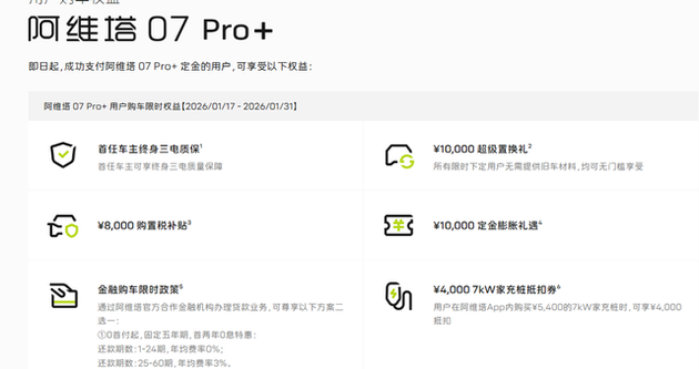 阿维塔品牌目前有阿维塔06、阿维塔07、阿维塔12都参与购置税补贴政策,相关车型可以享受8k的购置税补贴,并且还享受终身三电质保、定金膨胀和超级置换补贴以及金融政策支撑。目前没有看到阿维塔11参与相应活动,想入手的朋友可以和当地经销网点进行咨询,官网没有相关显示。