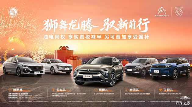 “狮舞龙腾 驭新前行”政策核心是提供一套覆盖用户全用车周期的系统价值方案。围绕 “油电同权” 的市场机遇,消费者购买东风标致或东风雪铁龙车型,除了享受现金优惠之外,还能享受国家提供的 50%车辆购置税补贴,显著降低购车门槛。