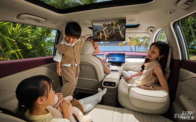 对多孩家庭而言,拥挤和疲惫是长途出行的“标配”。风神L8的“云柔大沙发”座椅,针对老人和儿童的久坐痛点设计,有效缓解腰酸背痛;主驾专属的头枕音响,让导航和音乐互不干扰,守护了全家人的静谧空间;二排的2.5K吸顶屏,则为孩子开辟了一个专属的动画世界。