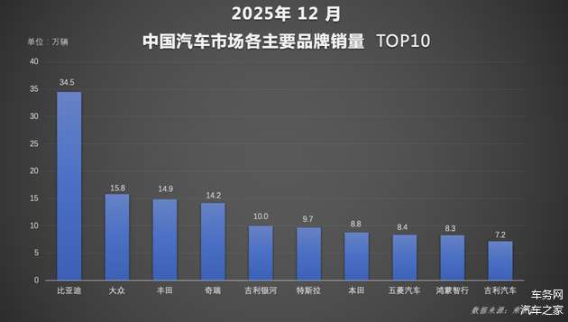 随着2025年圆满收官,中国汽车市场交出年度成绩单。行业数据显示,比亚迪在12月及2025年全年中国汽车市场品牌销量、新能源销量、集团销量等多个核心维度均位列第一。并连续四年蝉联全球新能源车市场销量冠军、中国汽车市场品牌四连冠,以冠军之姿持续领跑新能源汽车市场。