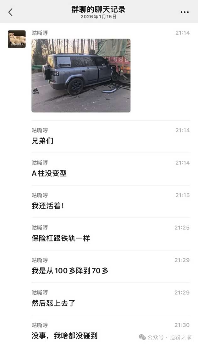2026年1月17日,迪粉之家公众号发布消息,近日,有车主驾驶比亚迪方程豹 钛7发生了严重的追尾事故,车主目前没有生命危险。