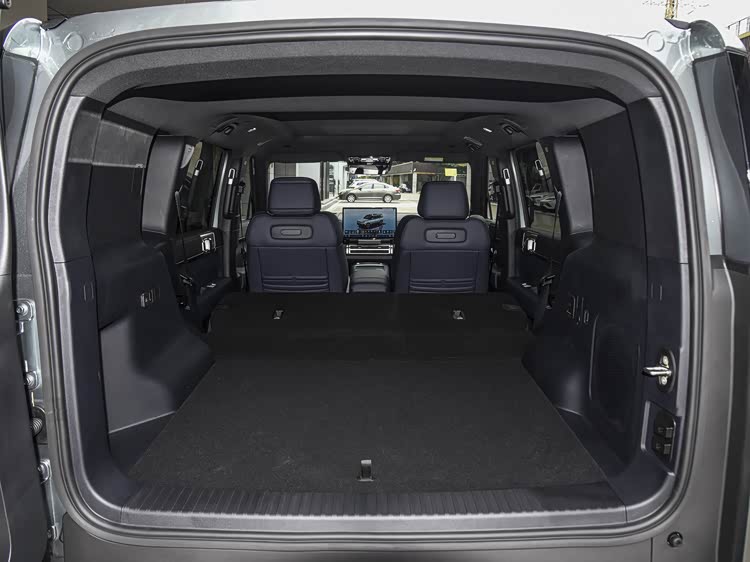 空间是这车最大的亮点。车长4999mm轴距2920mm,关键是乘员舱有效车长达到3310mm,空间利用率比同级SUV高。180cm的人坐前排头部还有一拳,后排腿部空间超两拳,头部高度接近1.1米,小孩能在后排直立换衣服这点很实用。方盒子造型没有溜背,后排头部不会被压缩。全车47处储物空间,门板储物格、中控分层储物区设计合理,带娃出门奶瓶尿布都有地方放。后备箱外挂32.5升储物箱是个加分项,铝合金材质防刮,能装越野工具或者露营装备。