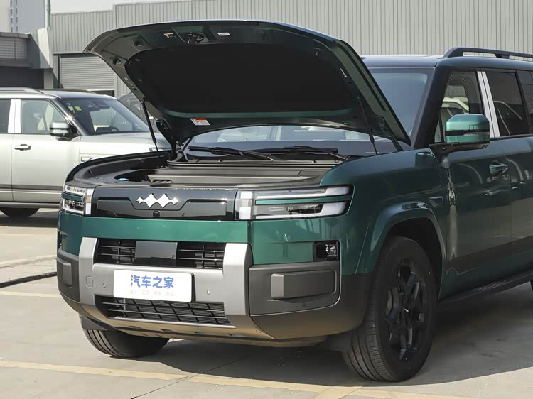 外观是硬派方盒子设计。封闭式前格栅配双L形灯组,H型面板和隆起机盖线条营造力量感,粗壮银色护板提升视觉冲击力。侧面横平竖直的线条勾勒出方正轮廓,哑光轮眉和侧裙护板增加硬派气质,隐藏式门把手和固定侧踏板兼顾实用。车尾双层方形尾灯128颗LED灯珠夜间辨识度高,外挂储物箱既实用又强化越野属性。旭日金等高闪车色在阳光下质感不错,整体造型符合年轻人对个性硬派SUV的审美。