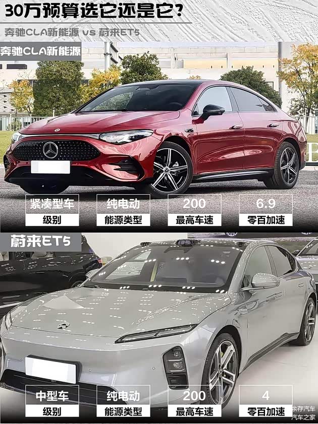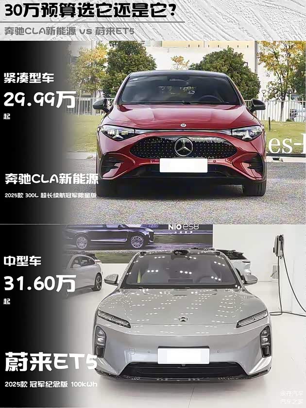 奔驰CLA新能源 2025款 300L超长续航冠军限量版 vs 蔚来ET5 2025款冠军纪念版,30万级纯电轿跑怎么选?🤔