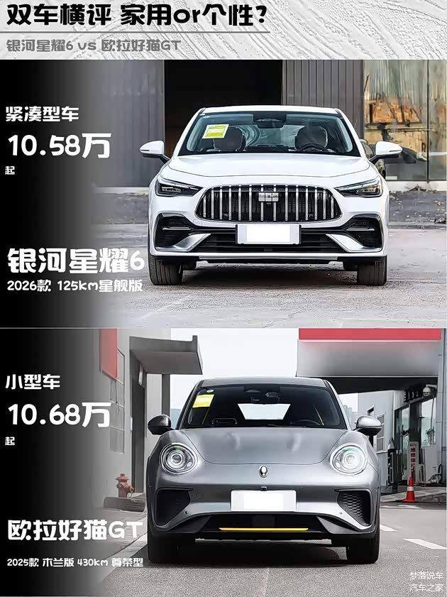 最近在选新能源车的小伙伴看过来!今天给大家深度对比两款10万级热门选手——银河星耀6 2026款125km星舰版 vs 欧拉好猫GT 2025款木兰版430km尊荣型,实测干货直接上菜!🔥