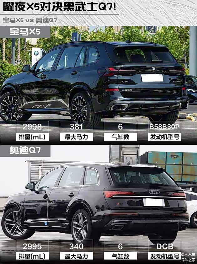 要驾驶乐趣选X5曜夜版,黑化套件+315宽胎帅到没朋友;要全家出游选Q7,七座+魔术空间更实用。现在X5终端优惠8万左右,Q7能谈到10万+,性价比其实半斤八两。