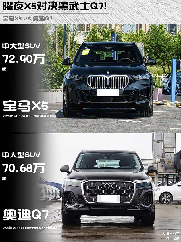 最近后台好多兄弟问我宝马X5和 奥迪Q7怎么选,刚好试驾了2025款 xDrive 40Li M运动曜夜套装和2025款 Q7 55 TFSI quattro S line运动型,直接上干货对比!🔥