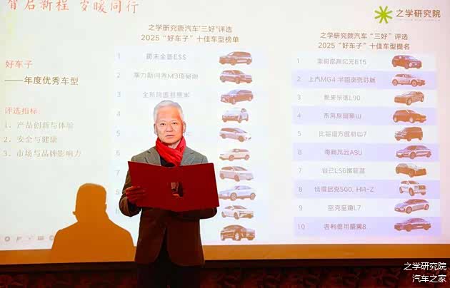 同济大学汽车学院、设计创意学院 双聘教授马钧揭晓2025汽车“三好” 评比“好车子”十佳榜单及提名。