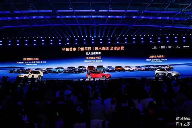技术的终极意义在于普惠。奇瑞以全域AI技术为支撑,在此次AI之夜上发布了涵盖SUV、轿跑、硬派越野、城市代步等多个细分市场的AI赋能车型矩阵,包括风云T9L、风云A9、 iCAR V27、全新QQ3、瑞虎9X、纵横G700等多款产品,让不同层级的消费者都能享受到高阶智能出行体验,推动中国智能汽车从“技术竞赛”迈入“普惠落地”的新阶段。
